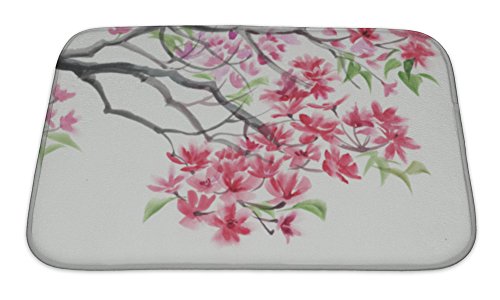 Gear New No Slip Microfiber Memory Foam Blossoming Tree Watercolor Painting Bath Rug Mat, 24" X 17"