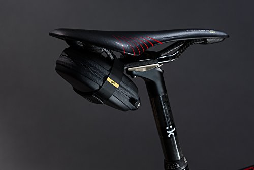 -. Feature : 丈夫で軽量、防水仕様のサドルバッグ。 / 熱成型の本体と、サドル同素材のマイクロテックスの表面にノイズを低減する内部のライニング。 / 熱可塑性ゴムのベルクロテープでサドルと固定(ICSクリップシステム非対応) / スペアチューブ、タイヤレバー、CO2ボンベが入る程度の大きさです。(内容物は付属しません。) / セミオートロックの止水ジッパー