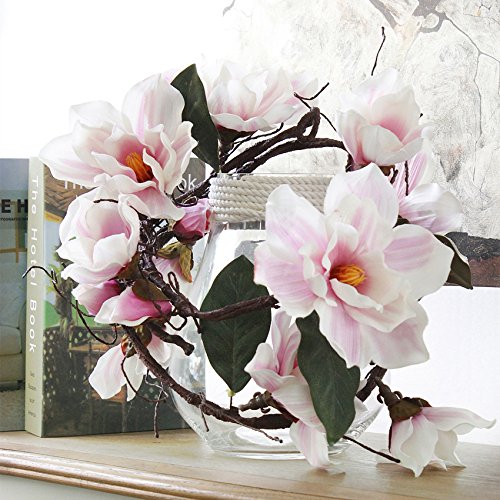Get Orange 73Inch Purple Artificial Magnolia Flower Silk Flower Green Leaf Vine Home Party Decor Wedding Dining-table Hotel Party Wedding DIY Craft Fake Floweres Marriage Decoration