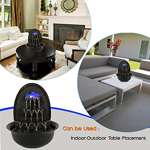 LIGHTS UP THE MOOD: This 3-tier relaxing table top fountain decoration has a crystal ball accent at the top of the fountain that is illuminated by a built-in LED which makes it really pleasing to the eye and that's sure to improve your comfort