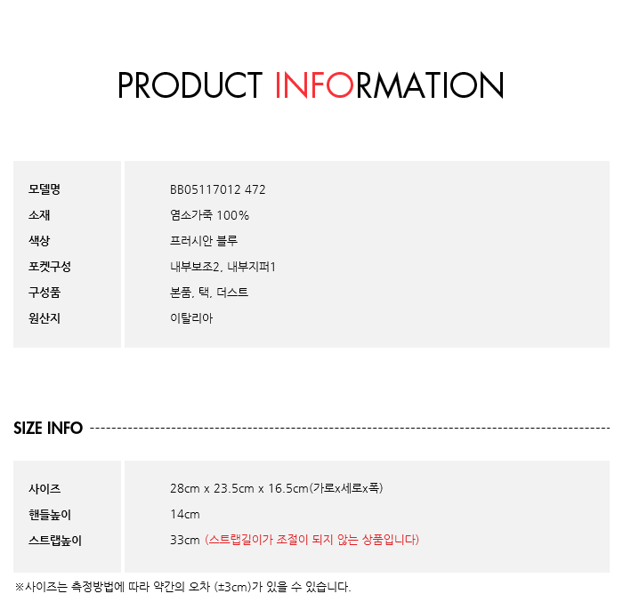 사이즈사이즈 : 28cm x 23.5cm x 16.5cm(가로x세로x폭)