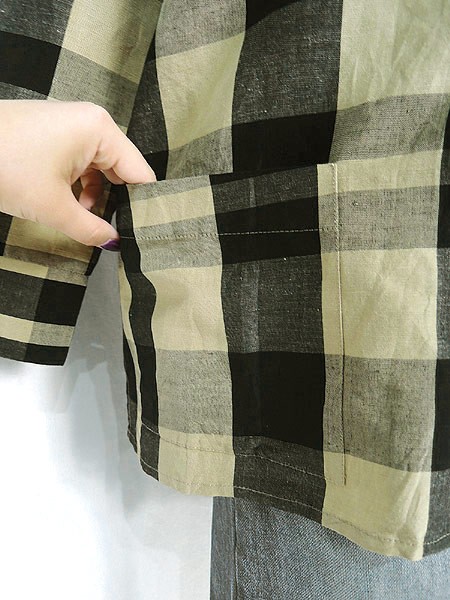 Ladies ブランド- カラー黒・ベージュ メール便不可 コンディション★★★ モデル- 素材レーヨン55%・シルク45% 表記サイズS 実寸サイズ 着丈 63 cm 身幅 53 cm 肩幅 40 cm 袖丈 48 cm スリット 12.5 cm ※ウエスト・ヒップ以外は平置き採寸
