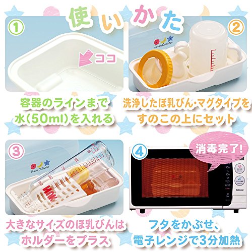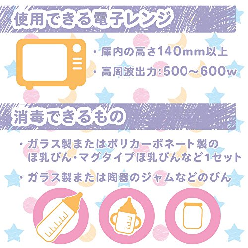 電子レンジで3分加熱。容器内に入れた蒸気になりスチーム消毒が簡単にできます。
