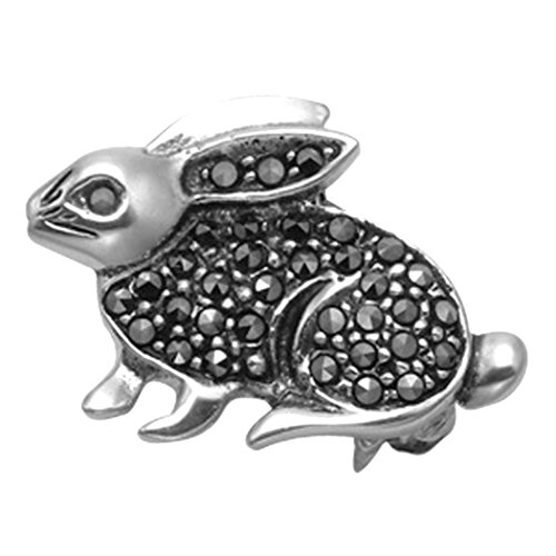 -. Title : Small Sterling Silver & Marcasite Bunny Rabbit Pin