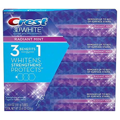 Brighten your smile with Crest 3D White Radiant Mint Whitening Toothpaste. It whitens your teeth by removing up to 80% of surface stains and protects against future stains. 3D White fluoride toothpaste also strengthens your tooth enamel and helps protect against cavities.Feature