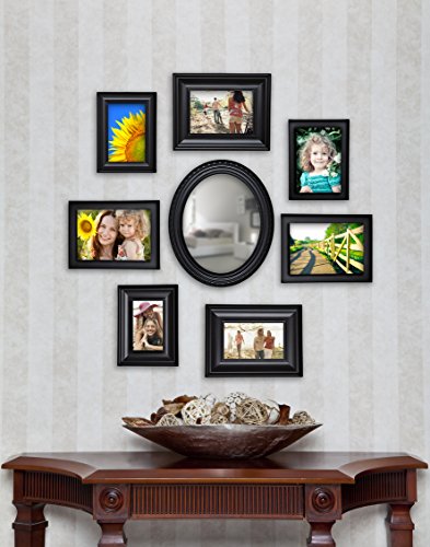 8 Piece Contemporary Black Picture Frame Set with Mirror