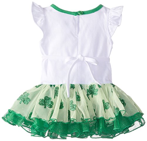 -. Feature : Short flutter sleeve / Shamrock glitter applique / Tiered mesh printed bottom / Solid colored legging / Functional back buttons