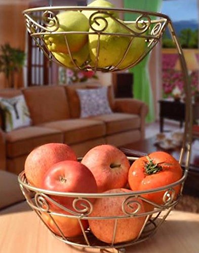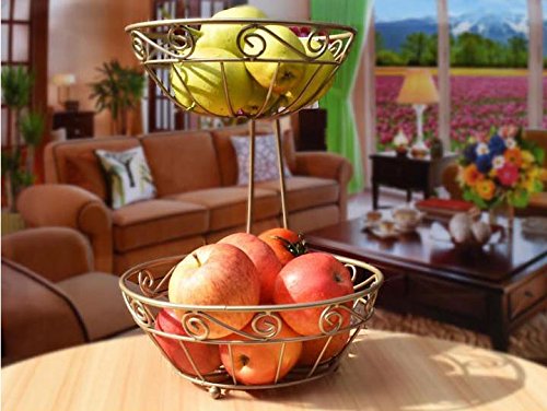 Linwell Fruit Basket Standing 2 Layers Metal Material (Champagne)