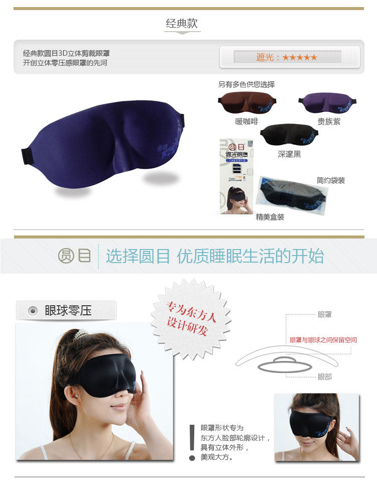 零听3D立体睡眠真丝感眼罩 睡觉遮光护眼罩4单色 午睡缓解眼疲劳