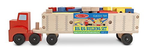 -. Artist : Melissa & Doug -. Binding : Toy -. Brand : Melissa & Doug -. Color : Brown -. Department : unisex-child -. EAN : 0885294538305 -. Feature : Made using the highest quality materials / Tested to be safe and durable / Great fun for your baby and child / Wooden vehicle toy and tool kit in one / Includes truck, trailer and 22 wooden building pieces. / Smooth-rolling wheels / Sturdy wooden construction / Great for fine motor skills, problem solving and imaginative play -. IsAdultProduct : 0 -. IsAutographed : 0 -. IsMemorabilia : 0 -. ItemPartNumber : md2758 -. Label : Melissa & Doug -. Manufacturer : Melissa & Doug -. Model : 2758 -. MPN : 2758 -. NumberOfItems : 1 -. PackageQuantity : 1 -. PartNumber : 2758 -. ProductGroup : Toy -. ProductTypeName : TOYS_AND_GAMES -. Publisher : Melissa & Doug -. ReleaseDate : 2013-01-01 -. Size : One Size -. Studio : Melissa & Doug -. Title : Melissa & Doug Big Rig Building Set -. UPC : 885294538305 -. Warranty : No Warranty