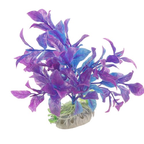 Uxcell Ceramic Base Plastic Aquarium Aquascaping Plant Decor, 6-Inch, Purple/Blue