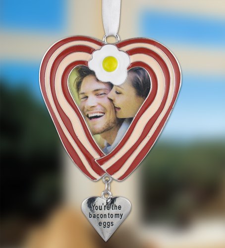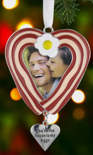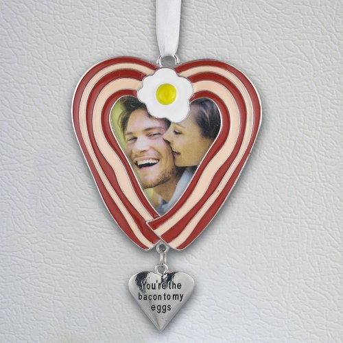 Bacon and egg heart photo ornament. Makes a funny bacon gift.