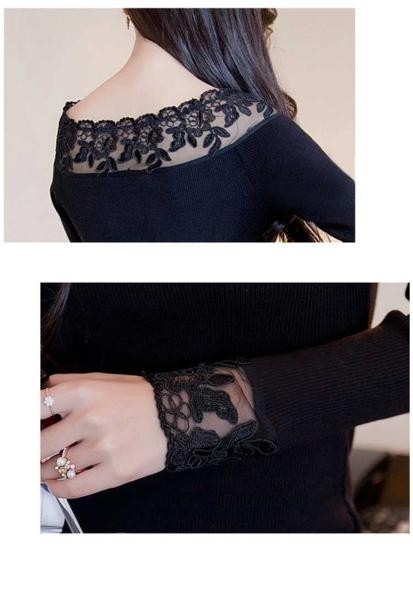 セクシー デコルテレース切り替え ニットタイトワンピース 黒/M