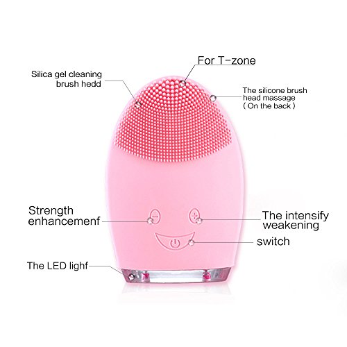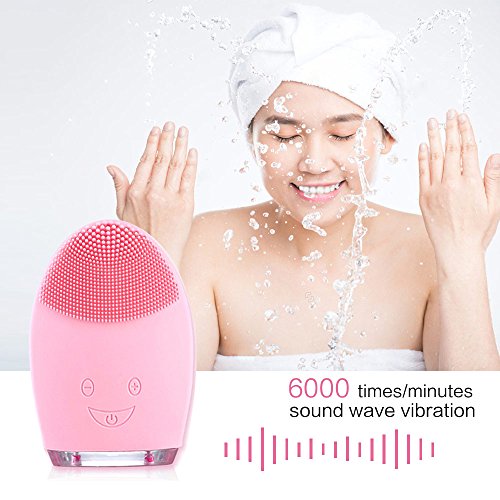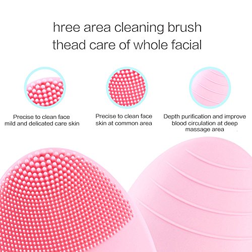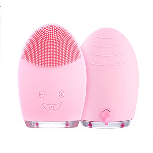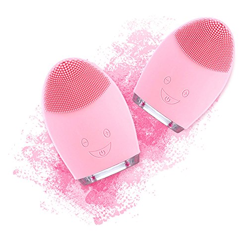 Silicone Facial Cleansing Brush,Face Cleanser & Massager Vibrating Waterproof for Normal Skin (Pink)