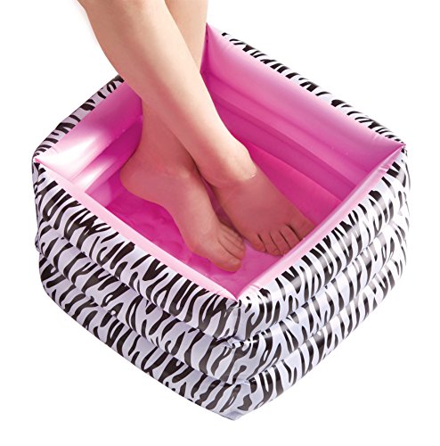 30+ PIECE GIFT SET: Comes with everything you need! This ultimate spa set includes: inflatable pedicure pool, battery operated nail dryer, satin eye mask, pedicure slippers and toe separators, 4 bottles of water-based nail polish, one bottle of water based glitter polish, nail file, buffer, press-on nails, sticker nail art, cotton balls and a satin spa bag.