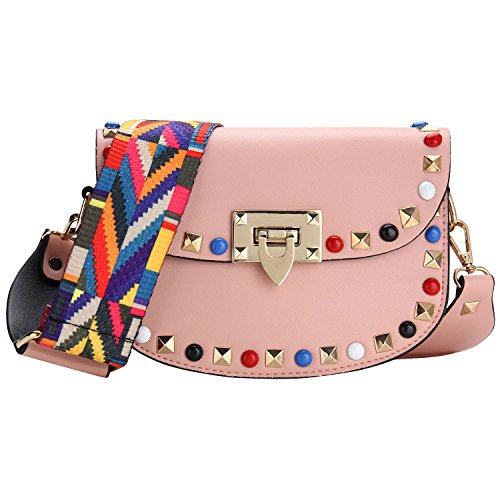 Our Bagerly Women's 2017 PU Leather Shoulder Bag will become a hit for the year of 2017 with its various useful functions and popular decorations. Small as it is, it has accumulated colorful candy rivets design style around the surface of the cross body bag, splendid stripes on the bag strap, all these small ideas makes the bag an elegant and hot symbol of you own style and taste, the two pockets(one main and one side)can deal with your trouble for carrying your daily accessories like cosmetics, phones, or keys and so on, the compact bag is lightweight and durable, it can be a quite good taking when you going out for meetings, parties or working as well as a kind of tasty home decorations when you don't use it.