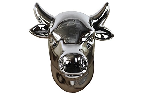 Urban Trends Ceramic Cow Head Wall Decor, Polished Chrome Silver