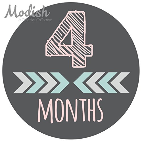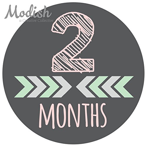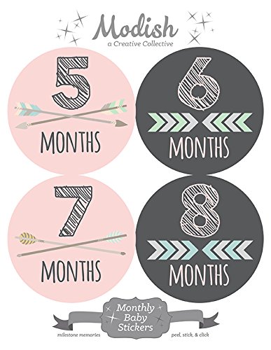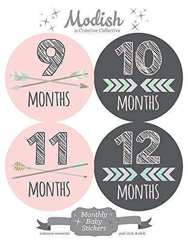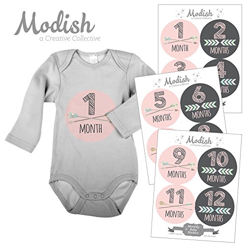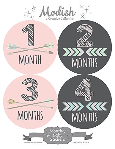 -. Title : 12 Monthly Baby Stickers, Pink, Gray, Tribal, Arrows, Chevron, Baby Month Stickers Girl, Baby Book Keepsake, Baby Shower Gift