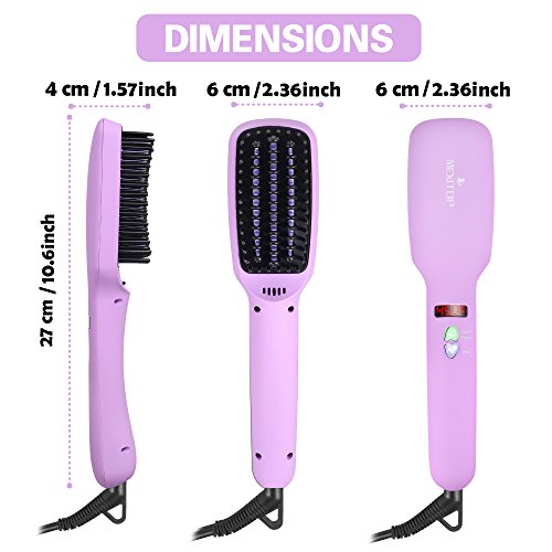 - 2017 New Ergonomic Innovation Comb: Especially designed crescent shape perfect fit human head form. It feels like getting a cool massage when you combing your hair, more smooth and effective stylish Making up. Newly adopted LEAD-IN teeth, the hair straightener brush can get into and brush your hair much easier and won’t miss up any piece for your hair straightening.