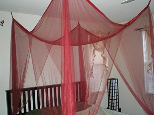 -. Title : 4 Poster / Four Corner Burgundy (Red) Bed Canopy Mosquito Net Full Queen King