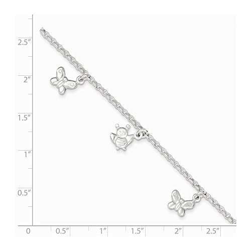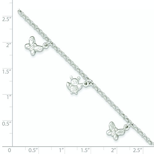 -. Title : Sterling Silver 10in Polished Butterflies & Bumble Bee Anklet