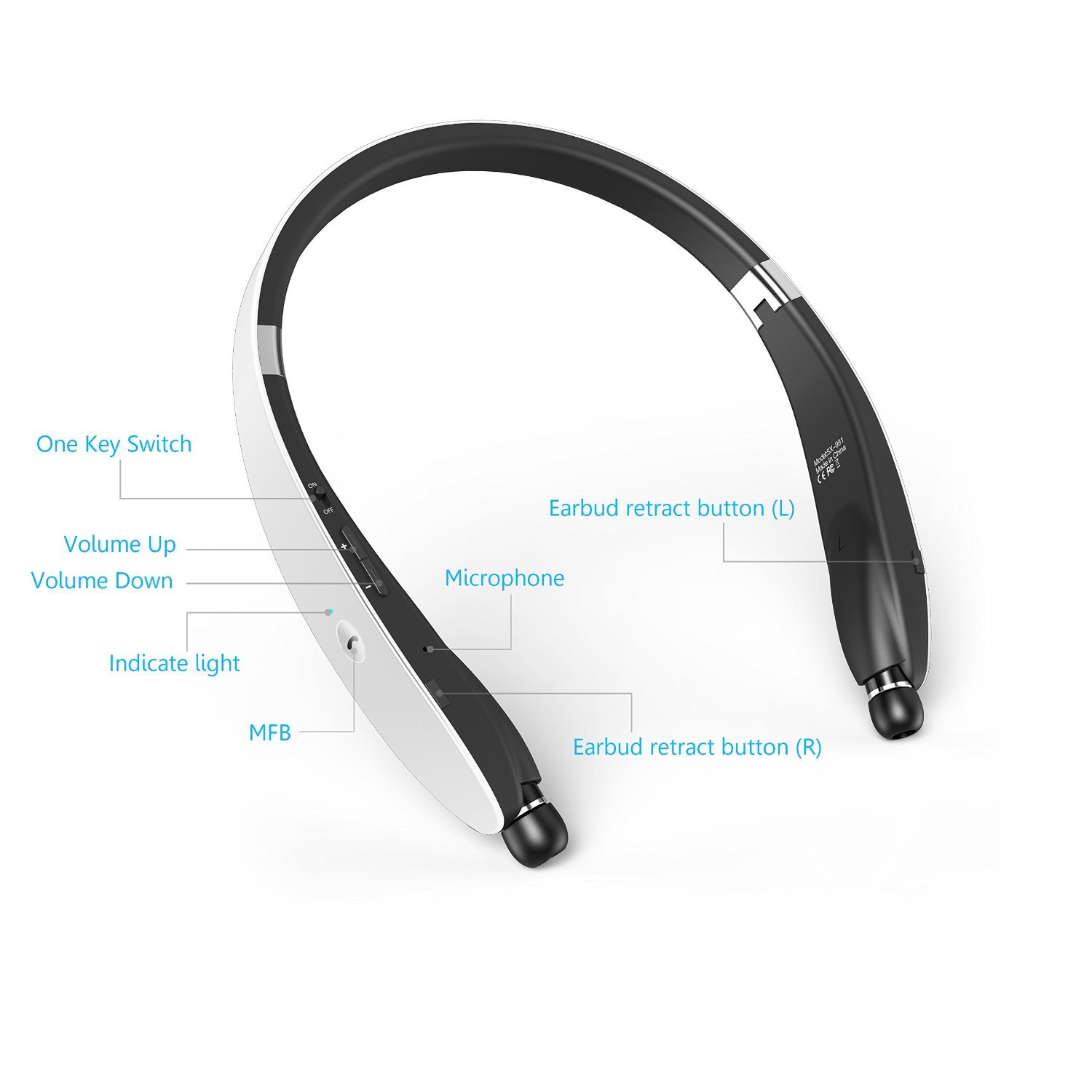 Dylan Bluetooth Earphone Wireless Headset Bluetooth Earphone Neck Band Design Retractable iPhone / iPad / iPod / Android Phone / Windows Phone (White)
