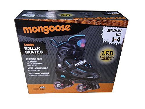 Studio : Jetta Sports LTS Publisher : Jetta Sports LTS Binding : Sports Product Description Mongoose roller skates are ideal for a young child learning how to skate. They are adjustable through 4 sizes so they will not out grow them immediately. The dual strap and large front toe stop will keep them safe and secure while the wheels and bearings provide a smooth and steady ride. Mongoose roller skates are durable, sporty and a great value. 0