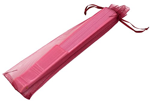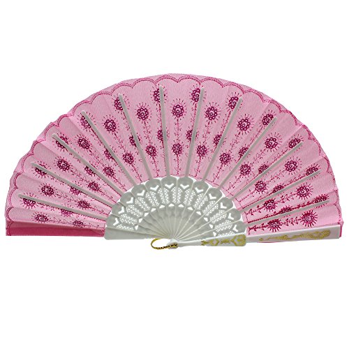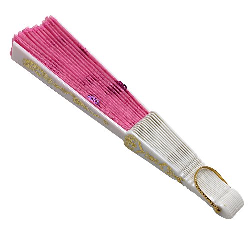 Newstarfactory Peacock Feather Pink Sequins Design White Plastic Folding Hand Fan with Exclusive Gift