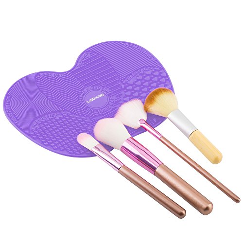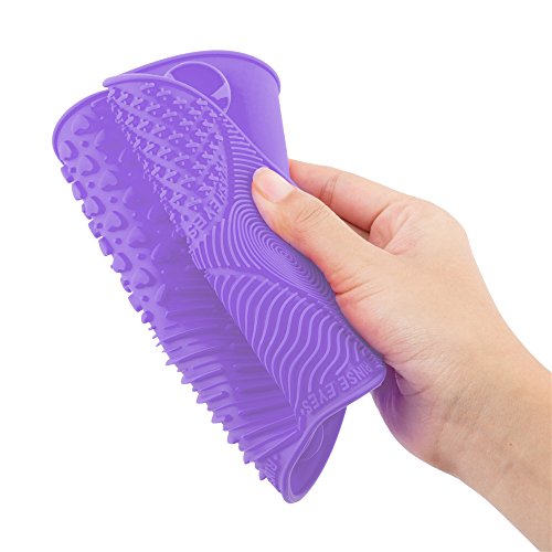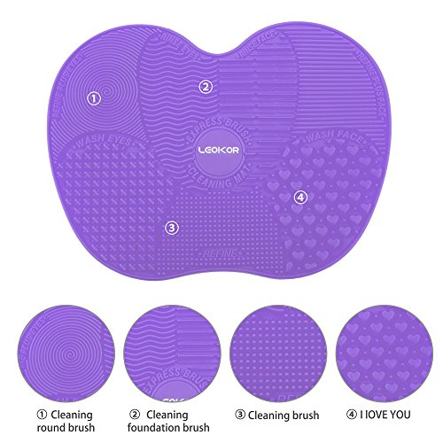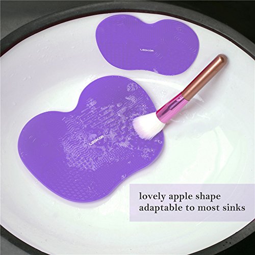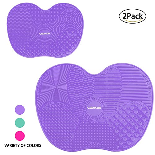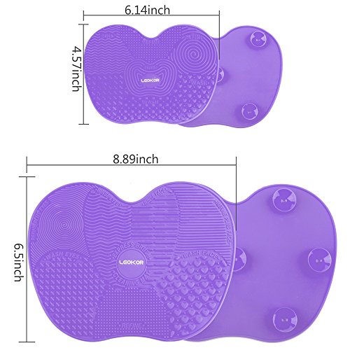 Makeup Brushes Cleaning Mat, LEOKOR Makeup Brush Cleaner Pad Set of 2 Cosmetic Brush Cleaning Mat Washing Tool with Suction Cup (Purple)