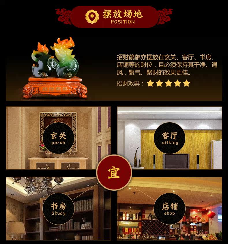 The Pi Yao is believed to offer its owner a minimum of eight blessings, 1) Brings fortune and good tidings, 2). Producer of good Feng Shui or Earth luck, 3). Attracts wealth and prosperity, 4) Safeguards the home and the residents in it, 5) Exterminates evil, adversity and obstacles, 6) Summons windfall luck, 7) Protects from accident during travel and 8) Appeases Tai Sui