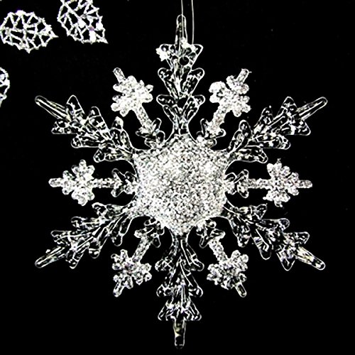 5 Pcs Clear Acrylic Glitter Christmas Snowflake Ornaments