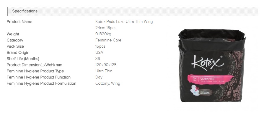 The all-new Kotex Luxe® Ultrathin pad - the new revolutionary pad where softness and dryness comes together. The best of both worlds, a pad so comfortable that you may forget you have your period. Now you can still feel fabulous and on top of your game even on your period days, no more compromises!