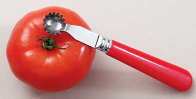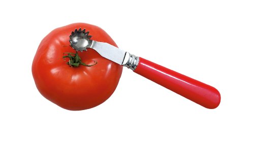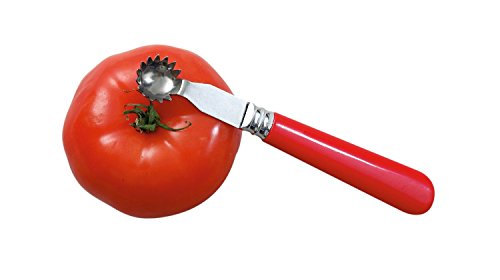 Product DescriptionThe CORE-IT Tomato Corer rapidly removes tomato cores with a sharp, serrated blade. Handle is red to mask stains left by tomato juice. Dishwasher safe.0