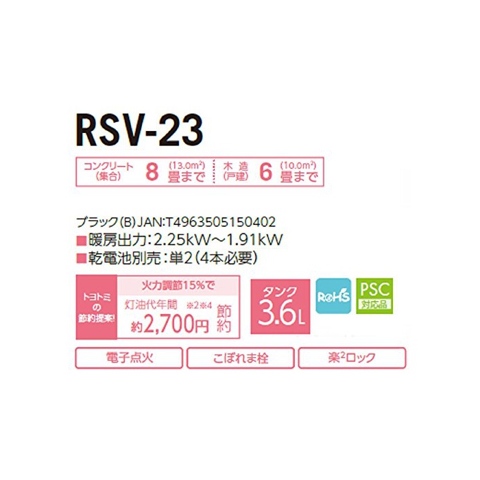 원본상품명:TOYOTOMI(トヨトミ) 石油ストブ 【コンクリト8 木造6】(日本製) ブラック RSV-23(B)