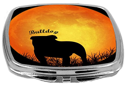 Rikki Knight Dog Silhouette by Moon Compact Mirror, Bulldog Silhouette By Moon, 3 Ounce