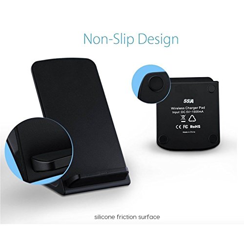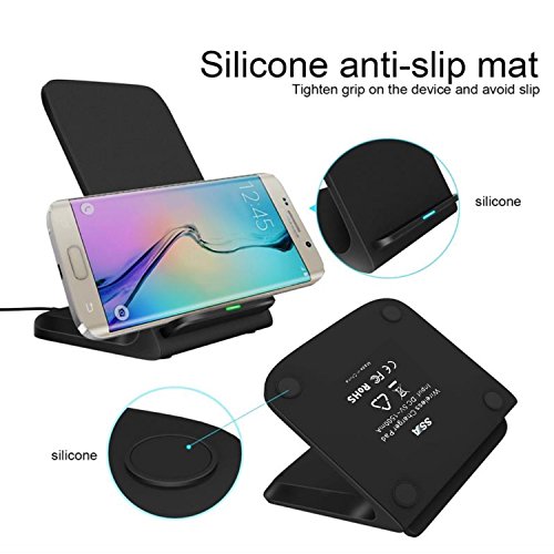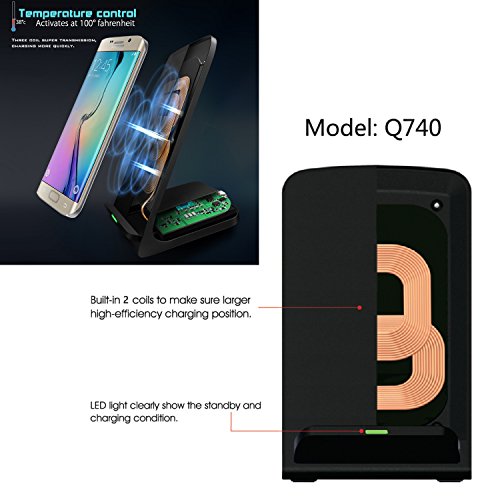 -. Feature : FAST CHARGE MODE: When put your phone on the charger, this QI 2.0 fast wireless charging stand will juice up your Samsung Galaxy device from dead to full in just about two hours, which is 1.4 times faster than standard wireless charging pad. / APPLICABLE MODELS FOR FAST CHARGE: Fast charge modes are available for the Samsung Galaxy Note 5, Note 7, Galaxy S6 Edge+, Galaxy S7, S7 Edge models. Other devices will charge at regular speed. Some devices may require an additional wireless charging receiver (Not Included). / SMART SPECIAL DESIGN: Steep incline designed bracket offers the best view angle to enjoy movie/music or play games while charging your phone wirelessly. Multi-colored led indicator light shows differnt conditions. Non-slip bracket set in the charging area prevents your phone from sliding. / INTELLIGENT LED INDICATOR: Intelligent LED indicator shows the status of safety charging. The wireless charging stand will turn into blue for 2 seconds when it connect to the power, and will turn into green and stays when it start to charge the phone. / NOTE: For fast charge mode, this QC 2.0 adaptive fast charger requires a QC 2.0 adapter as its power source. It's normal for your phone to get warm or even warmer during the charging process, and the PHONE CASES is suggested to be REMOVED while charging.