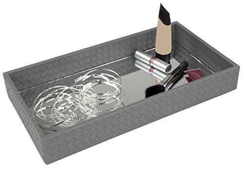 Home Basics Decorative Leather Bath Vanity Tray with Mirror (Grey)