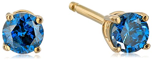 Blue Diamond 14k Yellow Gold Stud Earrings (1/4cttw, I2 Clarity)
