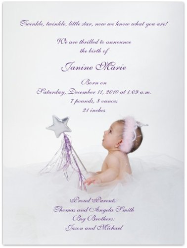 Studio : Storkie Express Publisher : Storkie Express Binding : Baby Product Product Description Birth Announcements: "Sweet Princess" features a little girl seated in the midst of white light grey tulle. The tulle adds an ethereal feel to this design. Wearing a 0