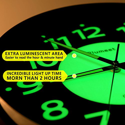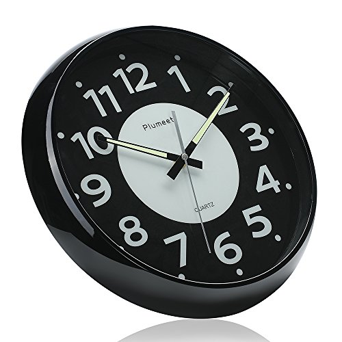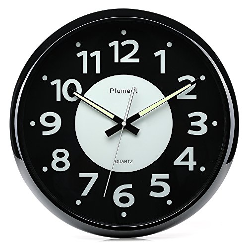 -. Title : Luminous Function, Plumeet 13-Inch Lagre Decorative Wall Clock with Night Lights & Non-Ticking, Silent Quartz Analog Wall Clock Decorative Living Room & Bedroom (Black)