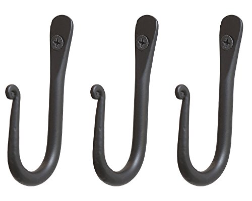 Blacksmith Handmade Simple Wall Mounted Wrought Iron Wall Hooks - Set of 3 (Black)