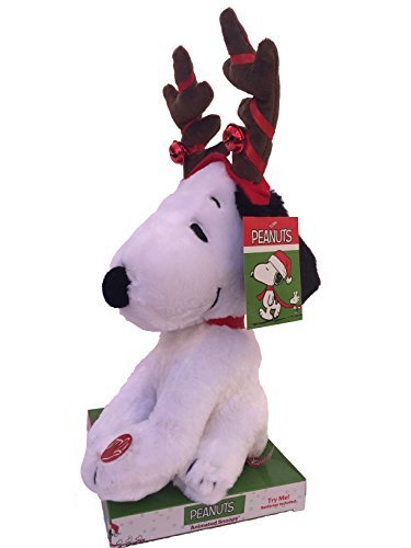 -. Title : Peanuts Animated Snoopy Puppy dog with antlers plays "Lucy and Linus" song 11"h