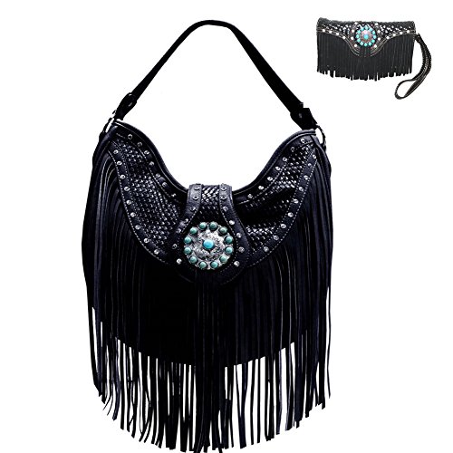 -. Brand : Western Cowgirl -. Color : Black -. Department : womens -. EAN : 4883483100773 -. Feature : Western Style Shoulder Bag With Wallet Set / Back Phone pocket with zipper closure Concealed Carry Pocket / The matching wallet with Extra Strap Use: One shoulder oblique cross / Two pouch pockets one zipper pockets Inside / Length 15.5'' Height 14'' Width 4'' -. PackageQuantity : 1 -. ProductGroup : Shoes -. ProductTypeName : HANDBAG -. Size : Large -. Title : Western Cowgirl Concealed Carry Fringe Cow Purse Handbag Hobo Messenger Shoulder Bag Wallet Set Black