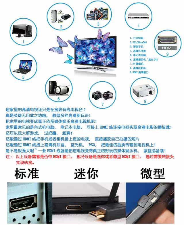 高清晰多媒体接口,数字端口一线通。它的最大特点,便是只需一条HDMI线接驳,便能以无压缩传送全数码的视频信号,并同时支持数码音频传送。业界普遍认为HDMI以其无损耗的信号传输、超大容量的传输、简单便捷的连线已经成为全球消费类电子的标准配置之一,代表了数字电视未来的发展方向。