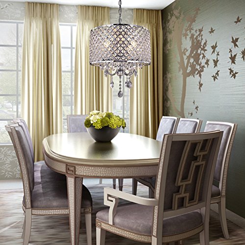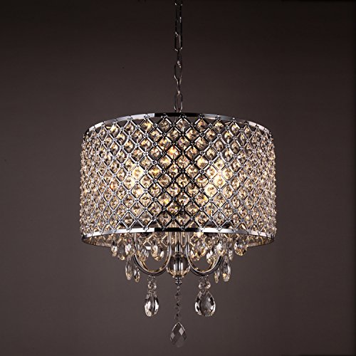 mirrea Crystal Chandelier Pendant Light, 4 Lights, with Crystal Beaded Drum Shade Chromed Finish