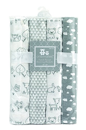 Regent Baby 4 Piece Flannel Receiving Blanket Farm Animals, Grey White