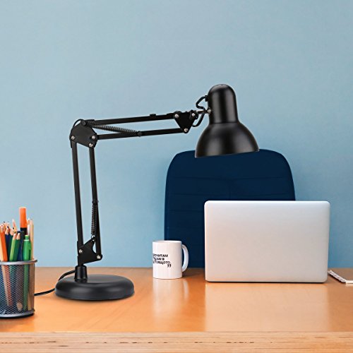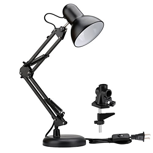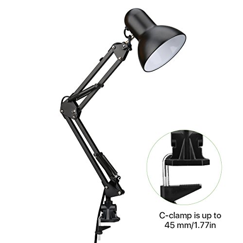 LE Swing Arm Desk Lamp, C-Clamp Table Lamp, Flexible Arm, Classic Architect Clamp-on Desk Lamp, Black Painted Lamp (Black - Metal Arm Joint)