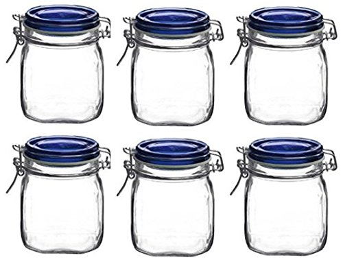 Bormioli Rocco: 6 "Fido" Jars (Capacity: 750ml - 25.36 Fluid Ounces), Blue Lid [ Italian Import ]
