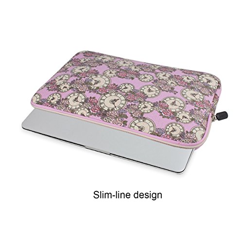 - Feature : Precise fit for laptops and ultrabooks with 13 13.3 13.3'' 14 inch MacBooks / laptops / notebooks / Ultrabooks; it may not snugly fit all 13.3 computers due to different sizes / Canvas Fabric material with Countryside Style (Clock Pink) offers a fashionable design and superior protection, fluffy fabric lining protects laptop/netbook from dust, shocks, bumps, scrapes and scratches & spills / Extra pocket is convenient to put mobile phone, notebook, cards, USB cable, headphone cable, mouse, power bank, stylus and other accessories; Bonus Zippered power pockets stores your power adapter and other accessories / Slim and lightweight; Double zipper with qualified material does not bulk your laptop up and can easily slide into your laptop computer, briefcase, backpack or other bag / Thickness: 0.3 cm; Product dimensions - 13.78" (l) x 0.78" (w) x 9.84" (h) / 35cm(l) x 2cm(w) x 25cm(h); Fits devices - 13.58" (l) x 0.79" (w) x 9.84" (h) 34.5cm (l) x 2cm (w) x 25cm (h)