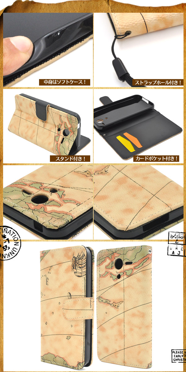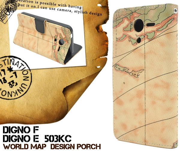 レトロな世界地図デザインがオシャレな、DIGNO F/DIGNO E(503KC)用ケースポーチ!
